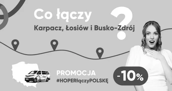 Hoper proponuje Ci transport bez przesiadek i bez stresu. Z nami podróż Kraków - Szklarska Poręba odbędziesz wygodniej niż autobusem czy pociągiem: zapomnij o czekaniu na dworcu i dźwiganiu bagaży.