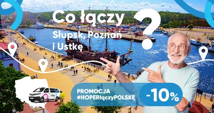 Hoper przejeżdża przez wszystkie województwa i 61% powiatów w Polsce. Wciąż powstają nowe trasy! Jeśli chcesz sprawdzić, czy z Twojej miejscowości zapewniamy dojazd do Ustki i poznać wszystkie trasy Hopera wiodące do tej miejscowości kliknij tutaj: hoper.pl/trasy-krajowe/Ustka