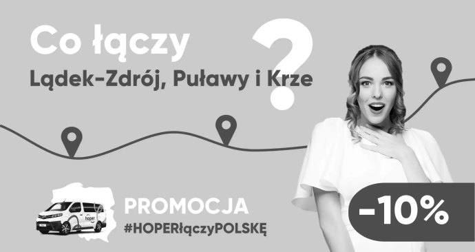 Hoper przejeżdża przez wszystkie województwa i 61% powiatów w Polsce. Wciąż powstają nowe trasy! Jeśli chcesz sprawdzić, czy z Twojej miejscowości zapewniamy dojazd do Długopola-Zdroju i poznać wszystkie trasy Hopera wiodące do tej miejscowości kliknij tutaj: hoper.pl/trasy-krajowe/Kłodzko