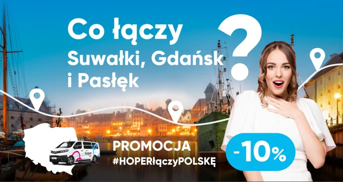 Hoper proponuje Ci transport bez przesiadek i bez stresu. Z nami podróż Suwałki - Gdańsk odbędziesz wygodniej niż autobusem czy pociągiem: zapomnij o czekaniu na dworcu i dźwiganiu bagaży.