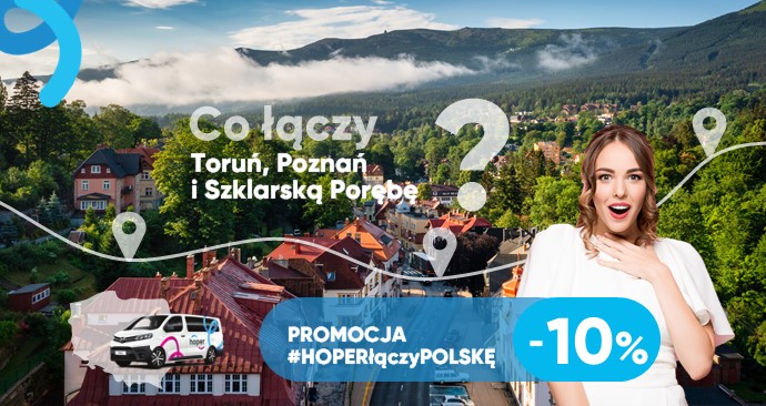 Hoper proponuje Ci transport bez przesiadek i bez stresu. Z nami podróż Toruń - Jelenia Góra odbędziesz wygodniej niż autobusem czy pociągiem: zapomnij o czekaniu na dworcu i dźwiganiu bagaży.